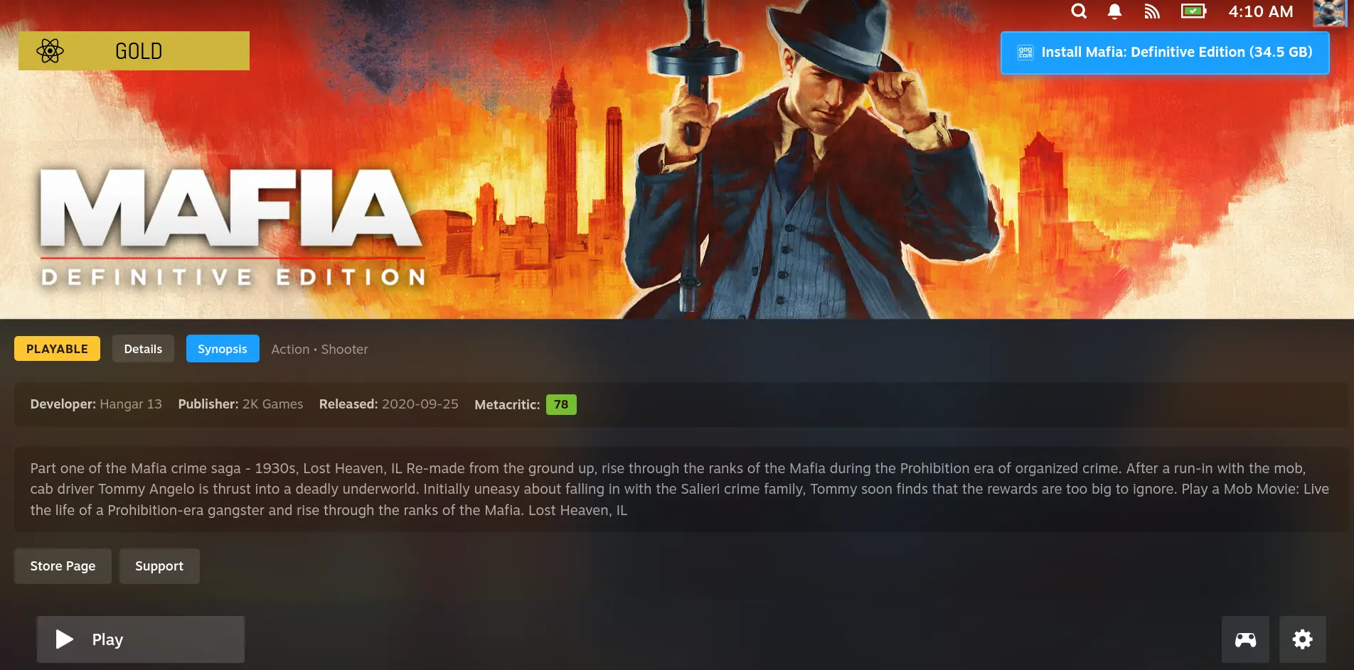 The newest update for Unifideck has a wealth of great new features to make using it significantly easier. Game pages for games being installed by Unifideck will now have their own custom setup above Steam's buttons, which includes a custom Install button, details for the game, showing which store it's from, and Metacritic score. It looks similar to the default pages now, while also simplifying the installation button and showing relevant information.